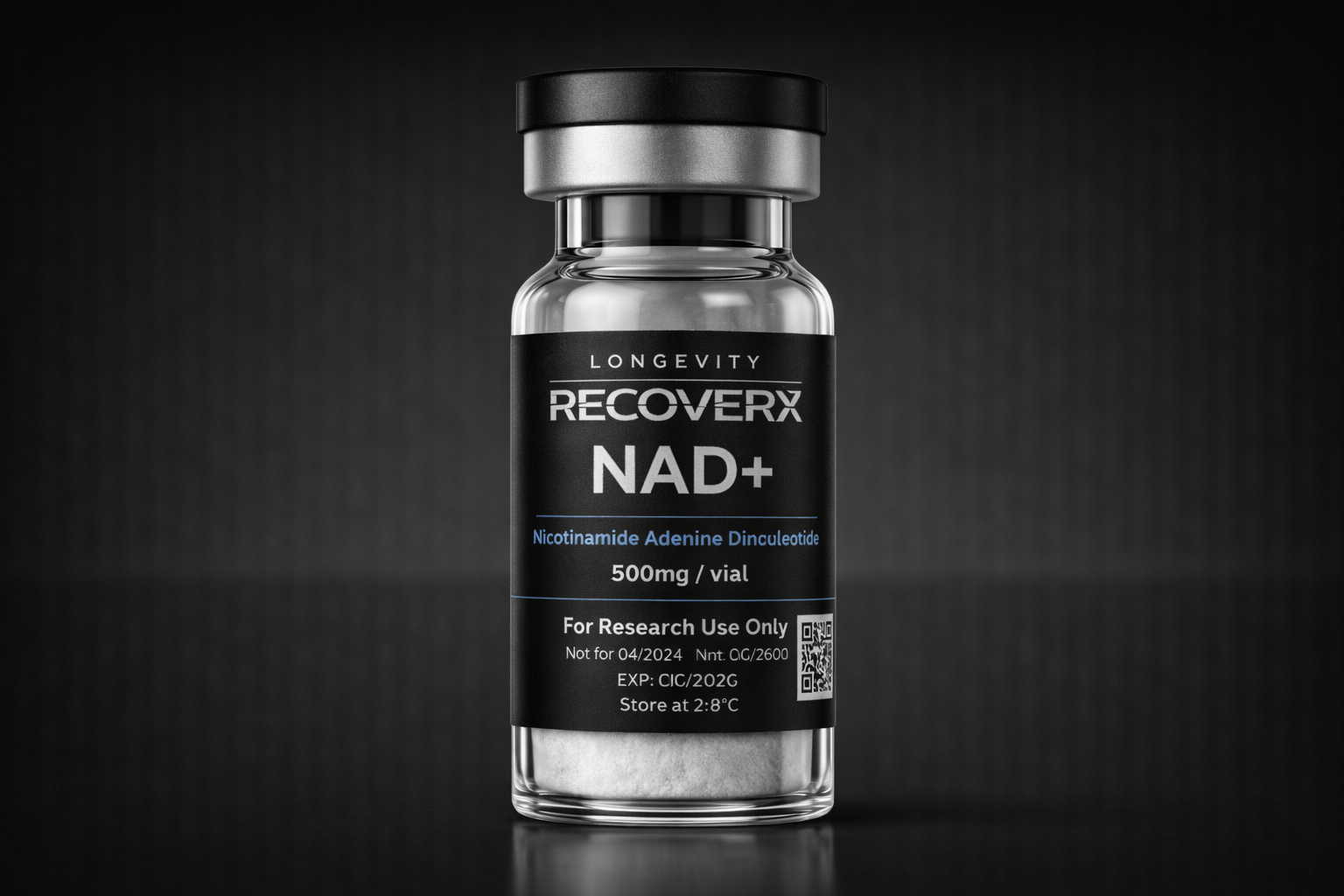 RecoverX NAD+ is provided as a lyophilized powder, preserving stability, potency, and structural integrity prior to reconstitution. Each vial is manufactured and handled under strict quality standards to ensure purity, consistency, and reliability.